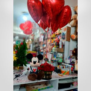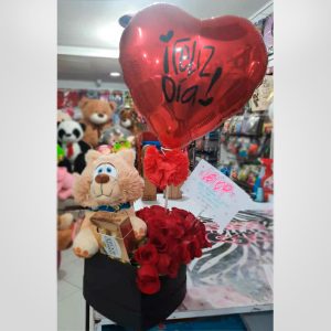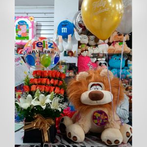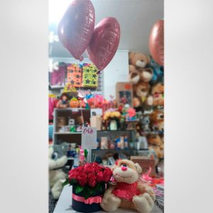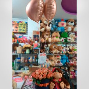Arreglo floral con peluche