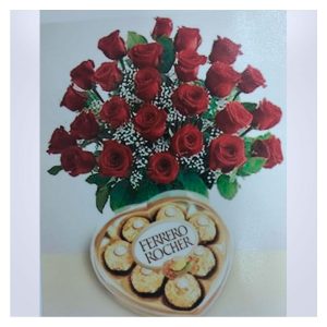 Arreglo floral con chocolates