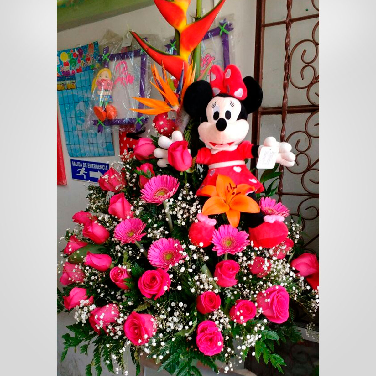 Elaborado con rosas, gerberas, peluche, moño mágico, globo metalizado y tarjeta personalizada.